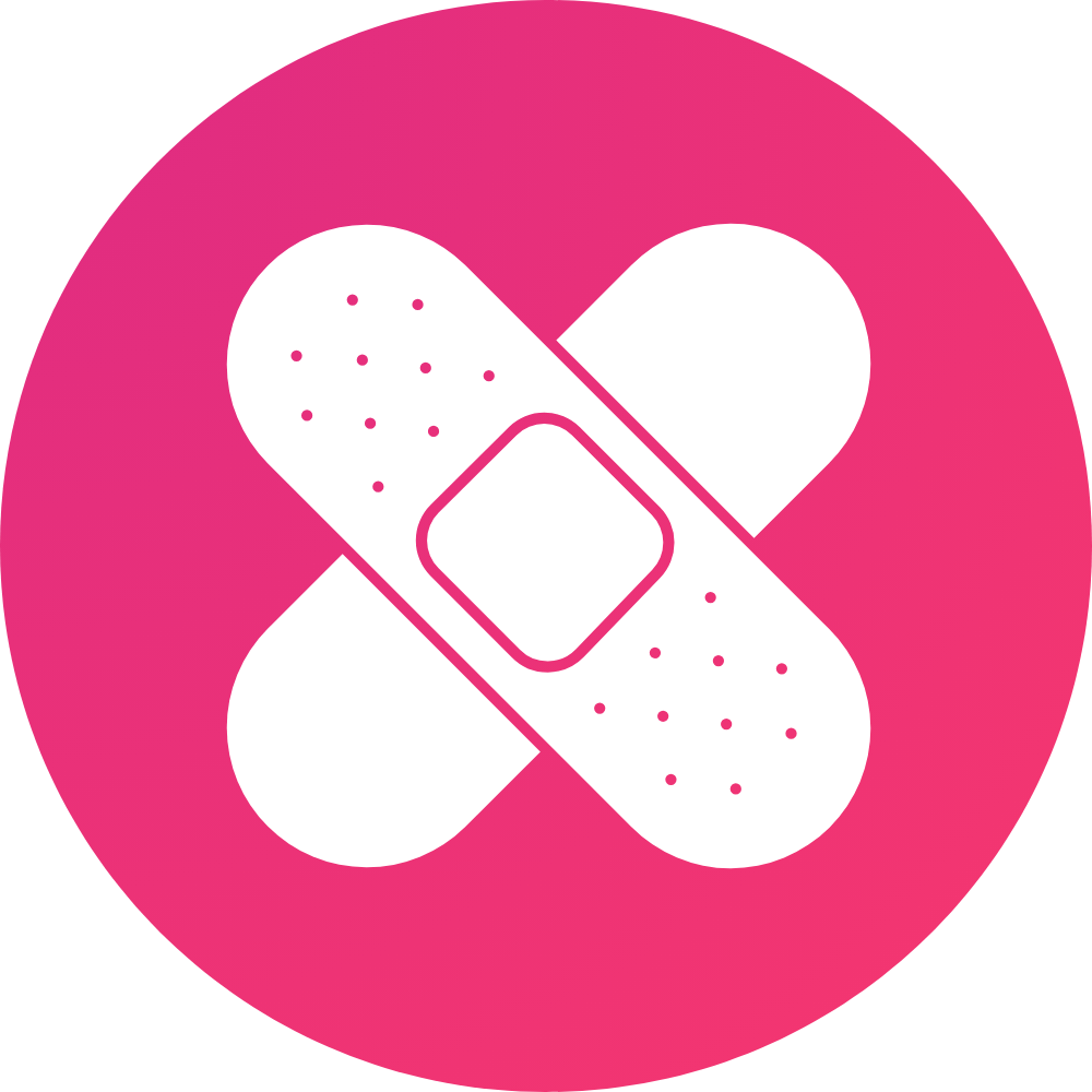 Erste Hilfe Massnahmen: Kühlen, Wunden reinigen, Pflaster aufkleben, Stützen